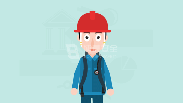 步骤一:背好整套正压式空气呼吸器,双手扣住身体两侧肩带的D型环,身体前倾,向下方拉紧D型环直到肩带及背板与身体充分贴合;