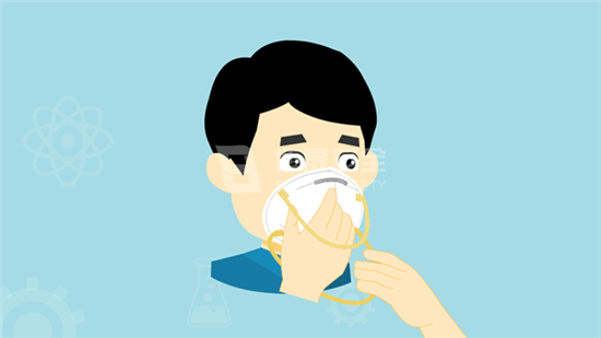 步骤二:戴上口罩并紧贴面部,防护口罩上端头带放于头后,然后下端头带拉过头部,置于颈后,调校至舒适位置;