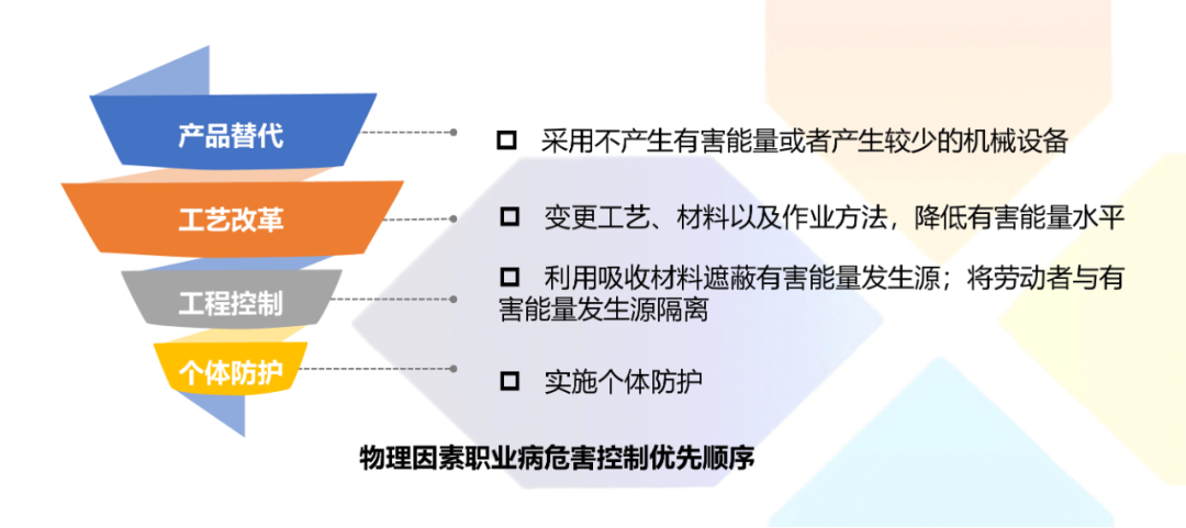 原辅料(或产品)替代 工艺革新 工程控制 个体防护。