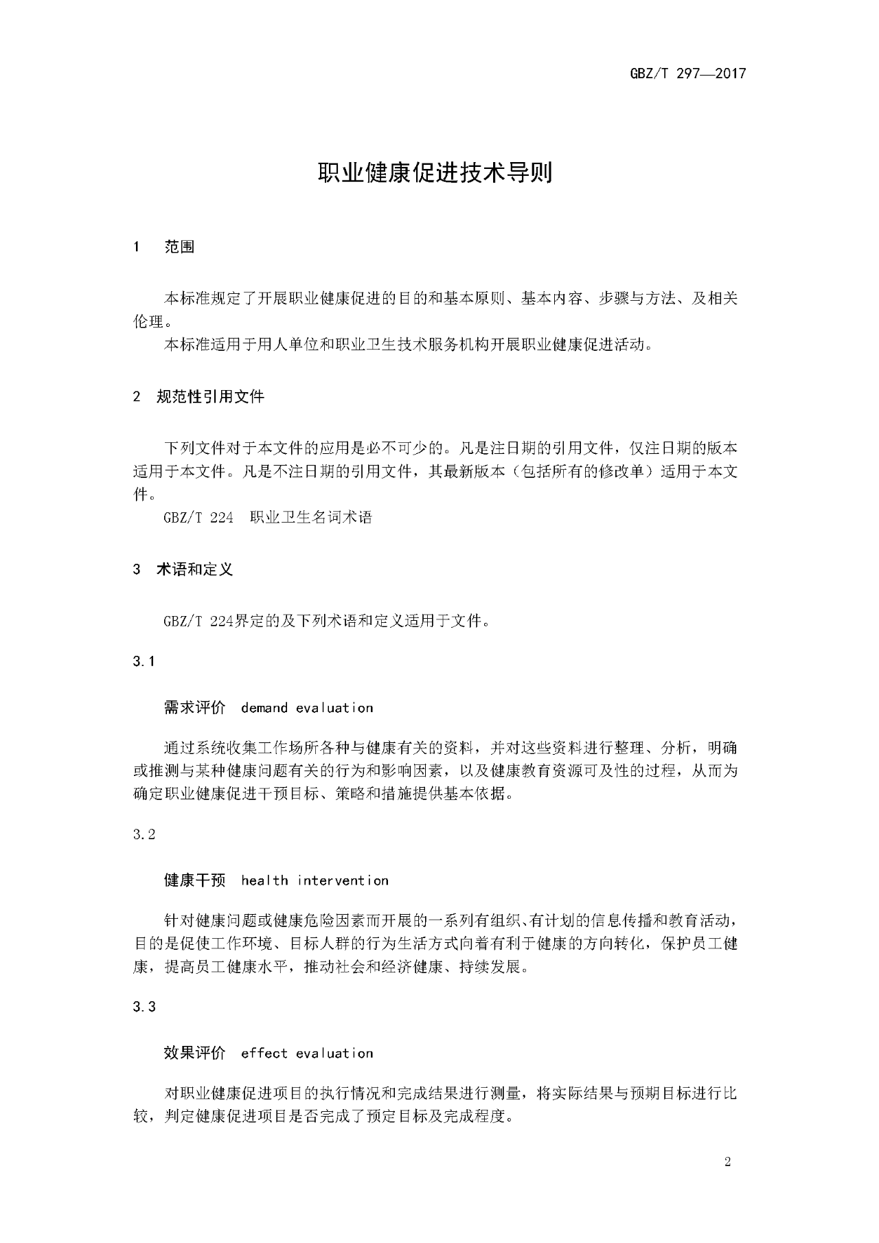《职业健康促进技术导则》GBZ/T 297-2017