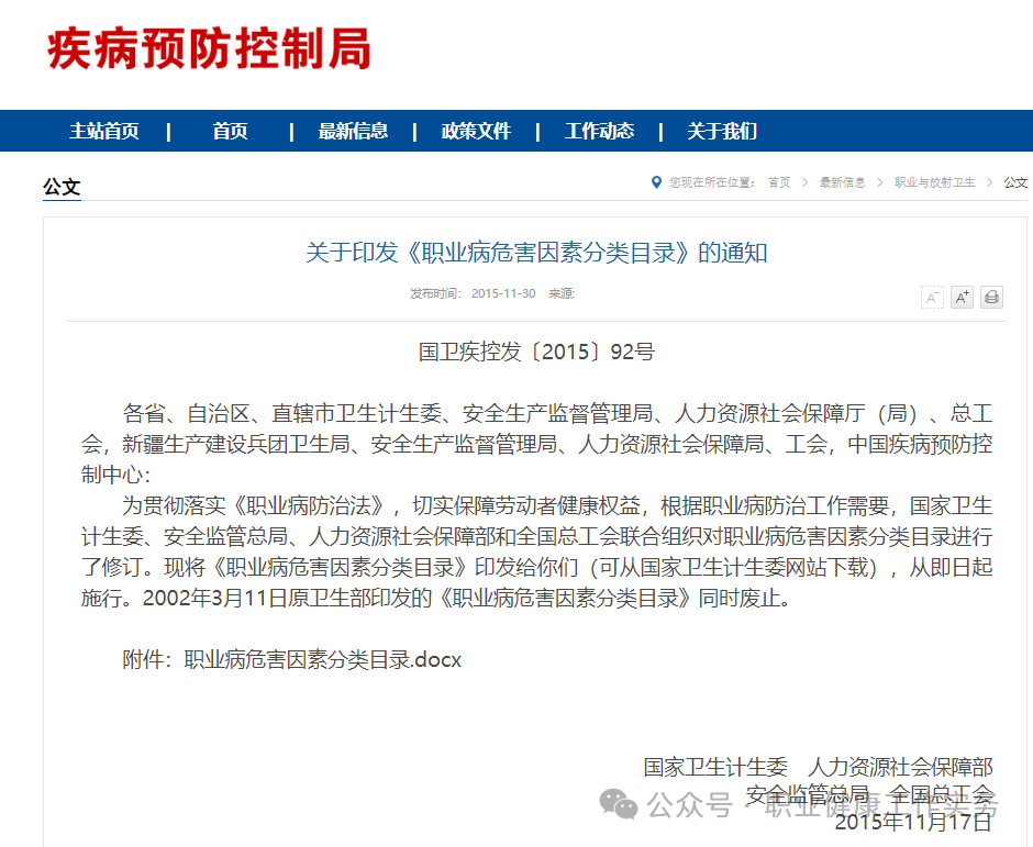 综上所述,《职业病危害因素分类目录》与《职业病分类和目录》是职业病防治工作中不可或缺的两个重要文件。它们相互关联、相互补充,其中《职业病危害因素分类目录》提供了职业病发生的潜在原因,而《职业病分类和目录》则列出了这些原因可能导致的健康损害结果。