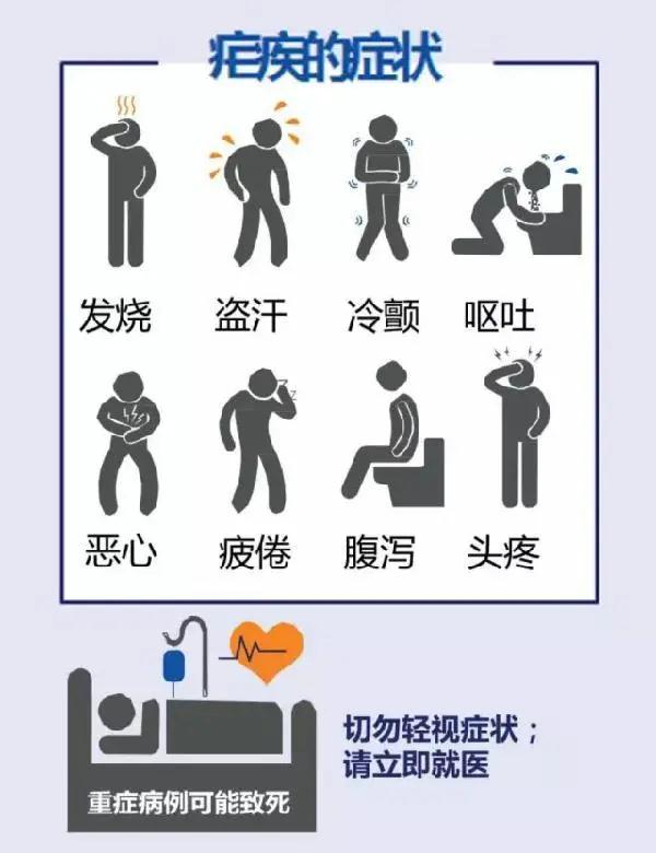 5、重症疟疾会危及生命,去疟疾流行区旅行后出现发冷、发热、出汗等不适症状应及时就医,就医途中要做好个人防护,佩戴医用外科口罩。入境和就医时应主动告知旅行史。
