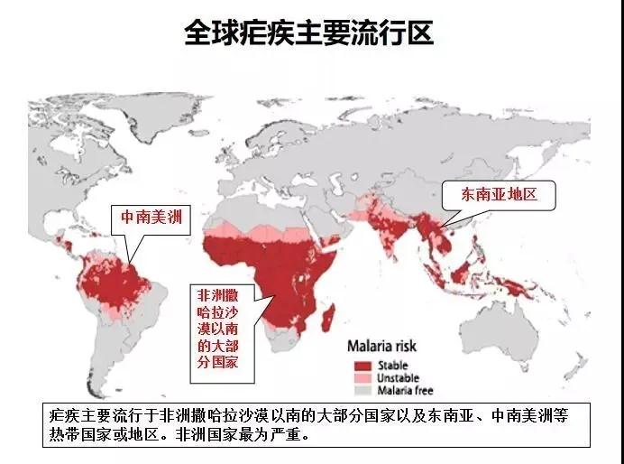 3、非洲和东南亚是疟疾高度流行区,出国前应当了解目的地的疟疾流行状况,做好个人防护准备。