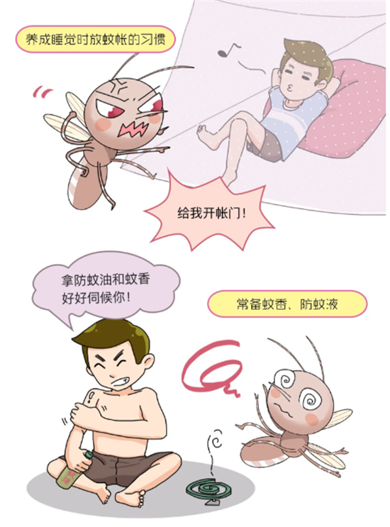 4.家里安装防蚊纱窗和蚊帐,必要使用杀虫剂、蚊香、电蚊拍等杀灭成蚊。