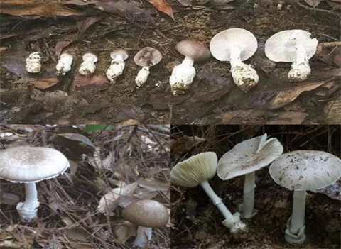 形态特征:菌盖直径5-10cm,呈白色,中央常有钝凸并呈米色,平滑。菌柄长8-16cm,呈白色并有白色鳞片,上部生有白色菌环,基部生有白色近球状菌托。