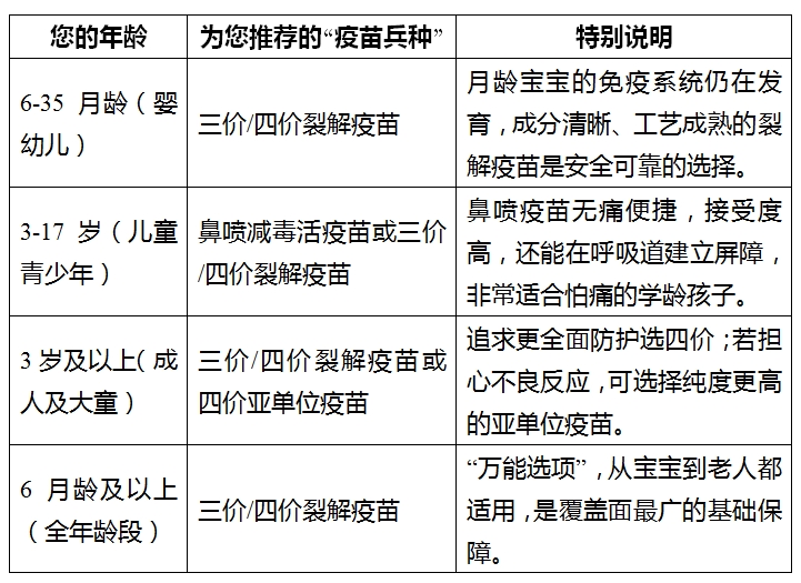 流感疫苗并非只有一种,不同的制作工艺赋予了它们不同的特性,就像不同的兵种,各有所长。