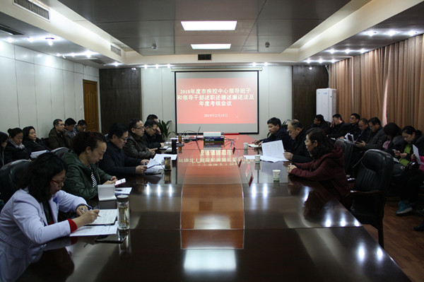 2019年2月15日,徐州市疾控中心召开2018年度领导班子和领导干部述职述德述廉述法及年度考核会议。市卫生计生委副调研员杨军、爱卫办主任曹配亮、疾控处副处长丁艳丽与会并对班子成员进行考核。