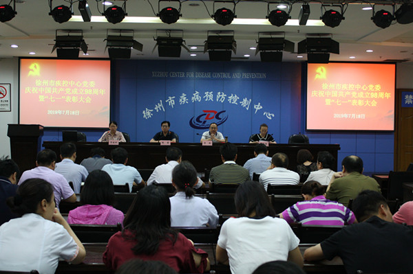 为纪念中国共产党成立98周年,迎接中华人民共和国成立70周年,进一步增强党组织的凝聚力和战斗力,宣传典型,表彰先进,动员全体党员进一步解放思想,团结拼搏,扎实工作,7月18日上午,徐州市疾控中心党委召开庆祝建党98周年暨“七一”表彰大会。