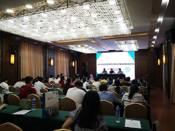 为交流各地工作经验,提升工作亮点,按时、规范、保质、保量完成城市癌症早诊早治项目工作,保证项目实施效果,市疾控中心于2019年8月6日在徐州市锦江都城酒店(金盾店)召开2019年城市癌症早诊早治项目阶段性总结会议。市疾控中心、市肿瘤医院项目相关人员,鼓楼区、泉山区、云龙区疾控中心分管主任、慢病科长以及承担项目的社区卫生服务中心工作负责人共60余人参加了此次会议。