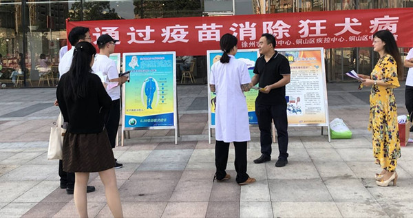 2019年9月28日是第13个“世界狂犬病日”。今年的主题为“接种疫苗,消除狂犬病”。狂犬病是我们国家法定报告管理的乙类传染病,是由狂犬病病毒侵害人或温血动物的中枢神经系统引起的急性会导致死亡的传染病,属人畜共患的自然疫源性疾病,主要传染源为猫犬。人感染上狂犬毒病后一旦发病,死亡率达100%,是迄今为止人类病死率最高的急性传染病。为普及狂犬病防治知识,提高群众对狂犬病防治知识的知晓率,9月29日下午,徐州市疾控中心、铜山区疾控中心和铜山区中医院联合在铜山区万达广场开展了狂犬病防治知识广场宣传咨询活动。