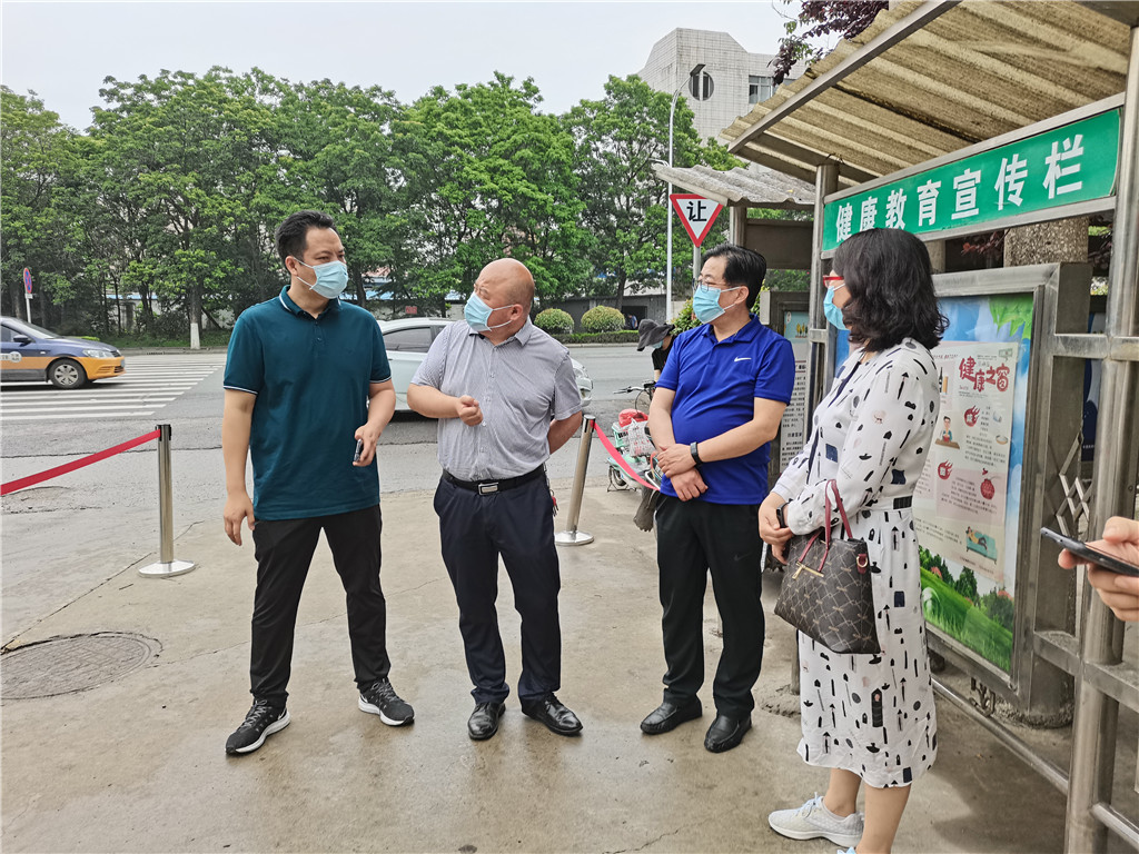 张雷主任一行实地查看医院入口处健康码和行程码核验情况,预检分诊和导医台设置、标识,医护人员值守情况,院内控烟工作,健康教育宣传栏设置,病媒生物防制,医疗废弃物暂存处,院内诊疗环境,消防安全等,对发现的问题提出整改措施。