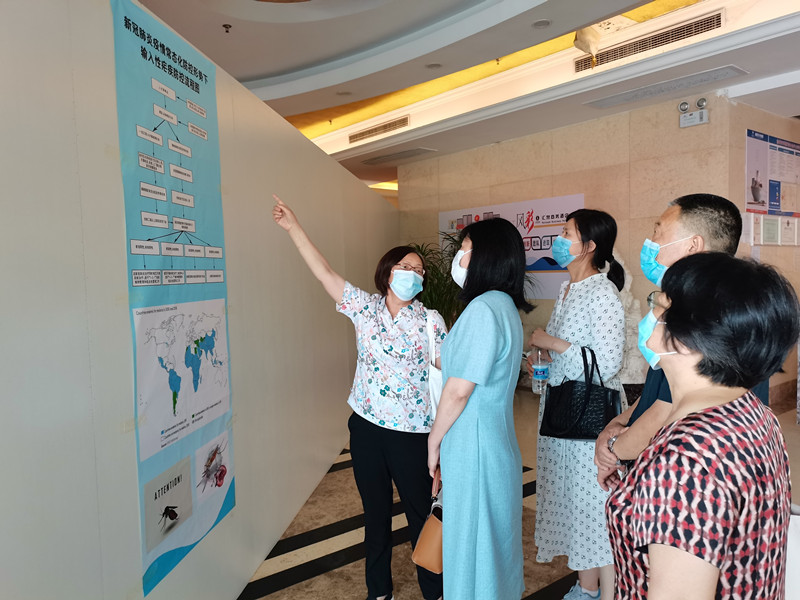 首先,市疾控中心寄地防科科长陈月娥就徐州市新冠肺炎隔离点输入性疟疾防控工作情况进行汇报,然后对当前新冠肺炎隔离点高疟区归国人员疟疾工作进行了座谈。督导组赴铜山区三堡镇汇泉酒店进行了自己实地调研,在汇泉酒店,铜山区新冠肺炎隔离点负责人对归国人员通道、房间的疟疾宣教布置、防控流程、人员安排等进行了详细介绍,给专家们留下了深刻的印象。督导组组长周华云主任高度评价了徐州市新冠肺炎隔离点的输入性疟疾防控工作,表示隔离点健康宣教全面细致,人员安排井然有序,疟疾防控流程清晰明了,隔离人员资料规范详实,为现阶段输入性疟疾防控提供了宝贵经验。陈月娥科长表示,将以此次调研为契机,全面落实各项输入性疟疾防控措施,常效运行疟疾防控监测网络,确保新冠疫情常态化形势下输入性疟疾防控工作不放松,保障徐州市民的身体健康。
