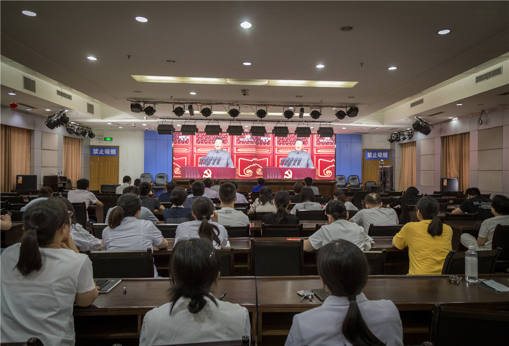 中心全体党员佩戴党徽,端坐静听,神情专注,全程认真观看庆礼盛况,重点学习习近平总书记重要讲话精神,共同回顾百年征程波澜壮阔,体会百年初心历久弥坚。当习近平总书记代表党和人民庄严宣告,“经过全党全国各族人民持续奋斗,我们实现了第一个百年奋斗目标,在中华大地上全面建成了小康社会,历史性地解决了绝对贫困问题,正在意气风发向着全面建成社会主义现代化强国的第二个百年奋斗目标迈进。这是中华民族的伟大光荣!这是中国人民的伟大光荣!这是中国共产党的伟大光荣!”中心党员热情澎湃,群情振奋,会议室中响起了经久不息的掌声。大家纷纷表示:将更加坚定跟党走的决心,始终坚守中国共产党的初心,牢记中国共产党的使命,在党的带领下不负时代,不负韶华,在疾控事业中奉献青春和热血,向着中国第二个百年奋斗目标迈进!