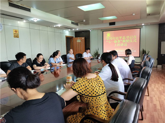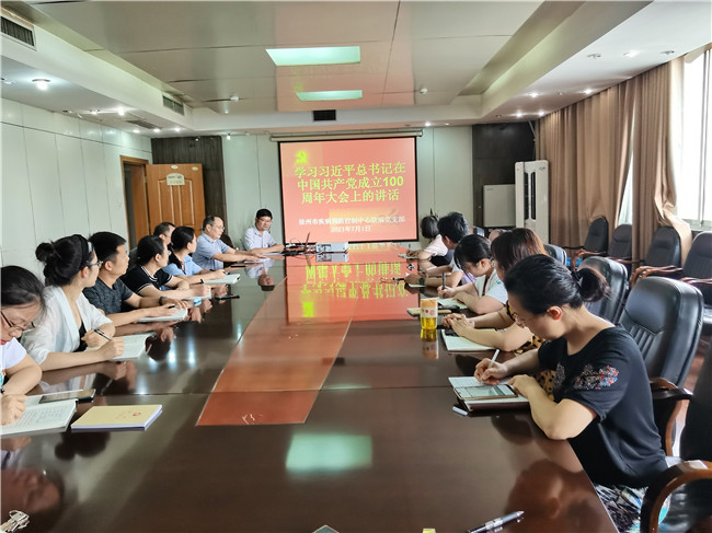 7月1日,徐州市疾控中心防病党支部全体党员在集中观看庆祝中国共产党成立100周年大会之后,开展了集中学习 “习近平总书记在’七一勋章’颁授仪式上的讲话”、 “习近平总书记在庆祝中国共产党成立100周年大会上的讲话”精神,召开了畅谈观看心得的专题讨论会议。