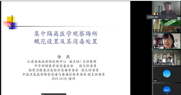 徐燕主任结合本次南京禄口及扬州、宿迁等地新冠疫情处置中集中隔离医学观察场所规范设置及消毒处置进行讲授,从隔离点管理对象、管理要求、人员配置与职责、集中隔离点的设置和卫生防疫要求、居家医学观察卫生防疫要求及隔离点消毒要求等方面进行详尽的讲解。吴晓松副所长就低温消毒、低温消毒现场实验和终末消毒过程评价及效果评价等三个方面进行培训。市疾控中心消媒科葛小伍、黄立业、刘雪分别对进口高风险货物环境消毒及污水处置,消毒基础知识及个人防护技术,常用消毒剂使用指南进行讲解;沛县疾控中心胡成文副科长就参与扬州外转人员健康管理驻点指导实践工作中,所发现的问题以及自己的感悟同与会者做了经验交流。(撰稿:黄立业;审核:葛小伍)