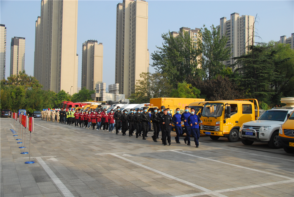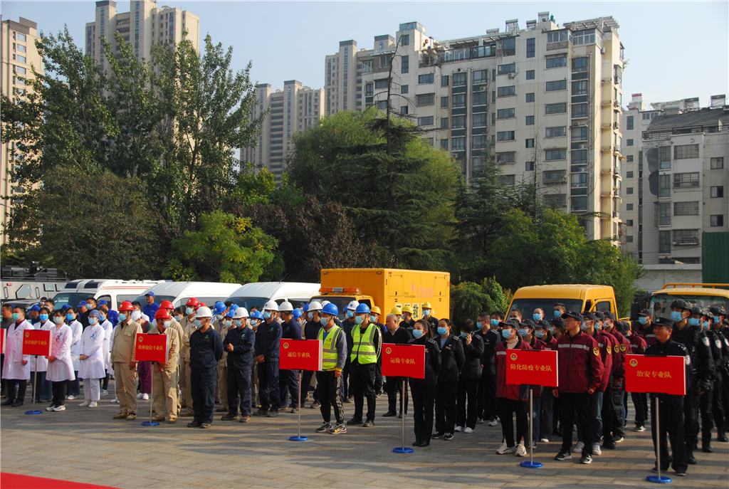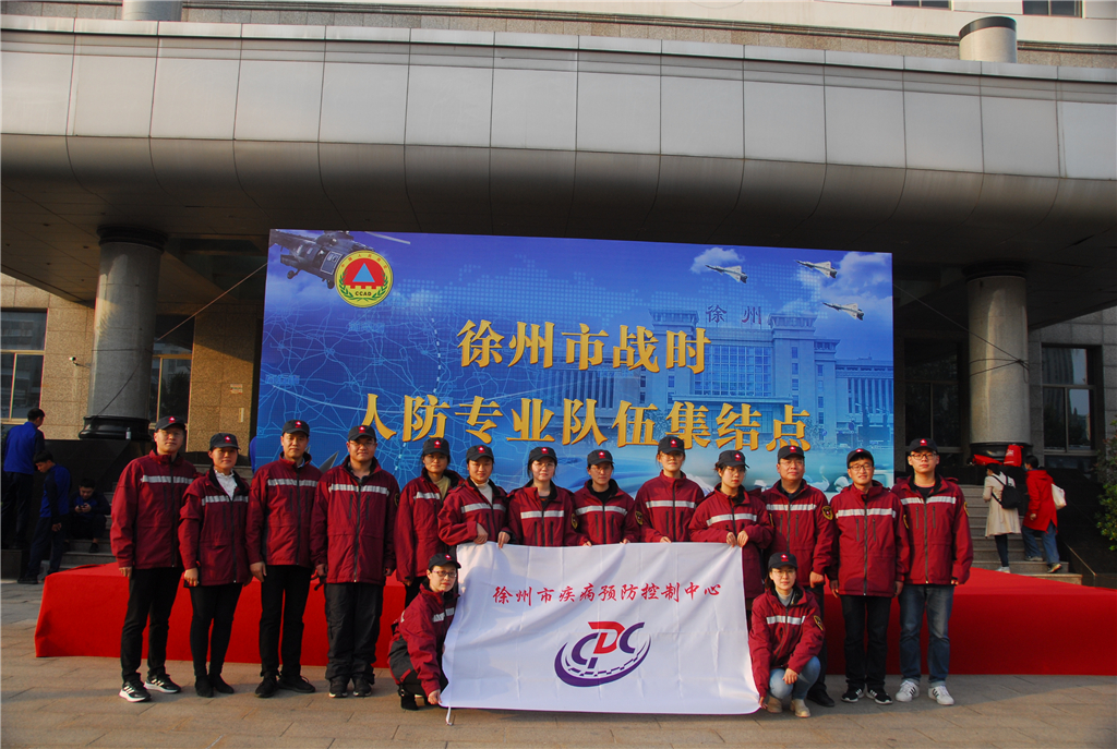 10月25日下午,市人防办组织全市人防专业队伍在市疾控中心楼前广场进行“铸盾徐淮——”徐州市人民防空综合演练。全市供电抢修、供水抢修、燃气抢修、医疗救护、消防、治安、防化防疫、通信、运输、信息防护、心理防等共十余支专业队伍约150人,20余辆专业车辆参加演练。市疾控中心20名应急队员组成的防化防疫专业队参加了此次演练。