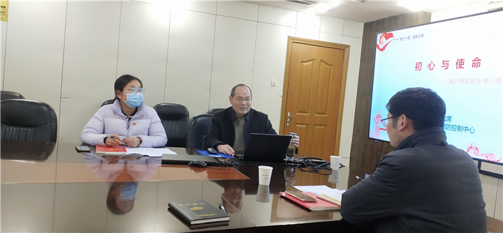 会议由中心党委委员、防病党支部书记毕俊同志主持。中心党委委员、副主任余加席同志作为普通党员参加了会议,并为党员们讲授党课。党课围绕着“初心与使命”这一核心内容,激励各位党员要践行使命担当,做人民健康忠诚卫士,为实现中华民族伟大复兴中国梦贡献智慧和力量。