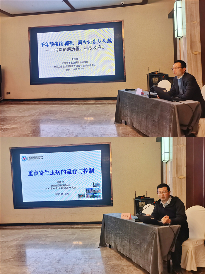 为总结2022年全市地寄防工作经验,部署2023年度地方病和寄生虫病防治工作,落实各项地寄防工作任务,同时全面提高全市疾病控制机构专业技术人员的寄生虫病防治理论水平和技能,增强各地综合防治能力,市疾控中心地寄防科于2023年3月29-30日在卡迪亚国际大酒店举办了全市寄、地防工作会议暨寄生虫病防治技术培训班。培训特邀江苏省血吸虫病防治研究所疟疾室主任朱国鼎和蠕虫室主任刘耀宝授课。各县 (市)、区疾控中心分管主任、寄地防科长、寄地防业务骨干及新进人员、徐医附院、徐州市第一人民医院和徐州市肿瘤医院相关科室业务骨干,共计70余人参加了此次培训。