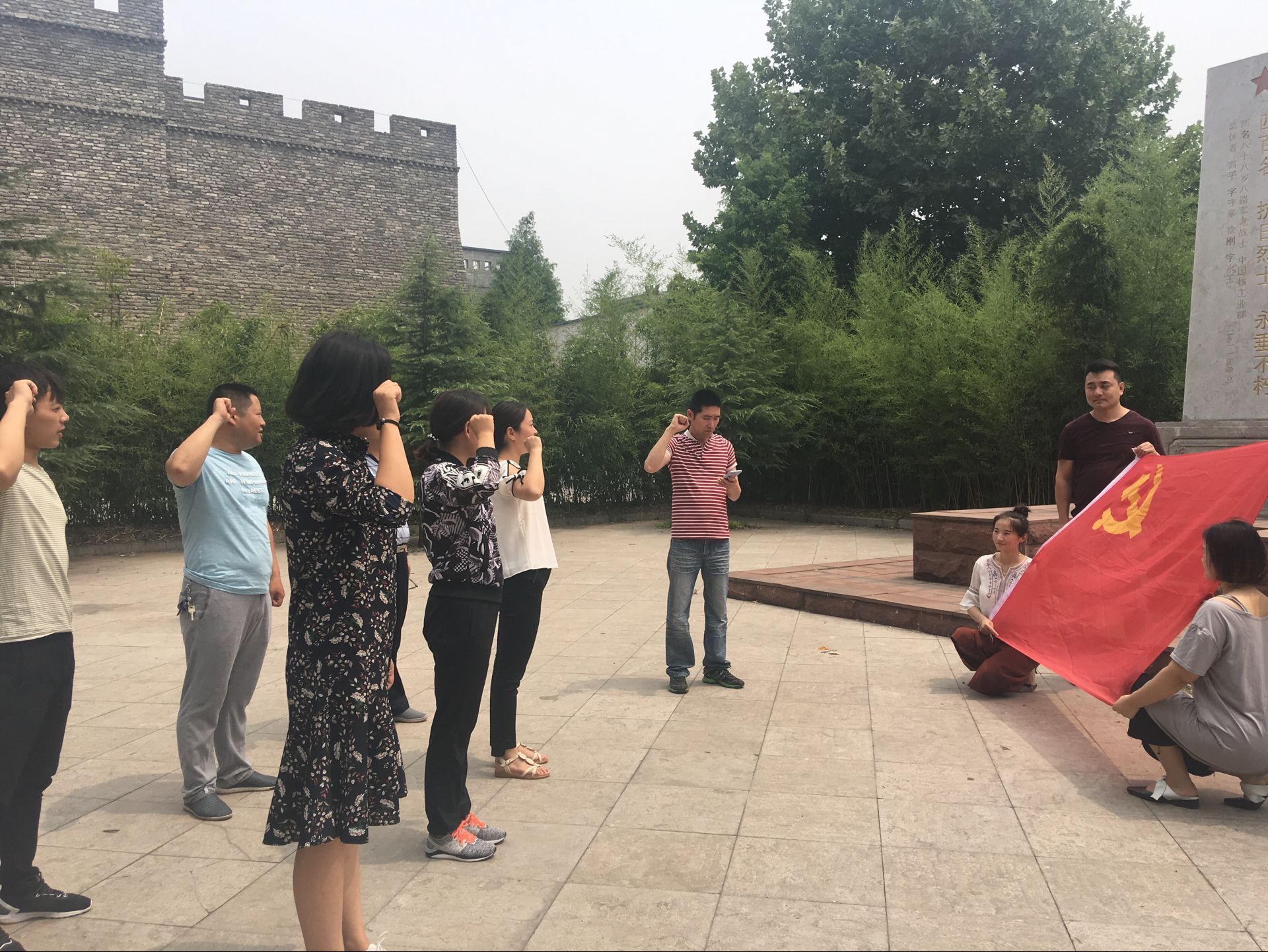 全体党员首先来到运河支队四百烈士纪念碑前,整齐列队,高举右拳,庄严宣誓,重温入党誓词。“我志愿加入中国共产党,拥护党的纲领,遵守党的章程,履行党员义务,执行党的决定……”短短的12句入党誓词,句句铿锵有力,以饱满的激情和坚定的承诺展示了身为共产党员的自豪感与使命感,每一位党员同志的心灵再次受到震撼和洗礼。