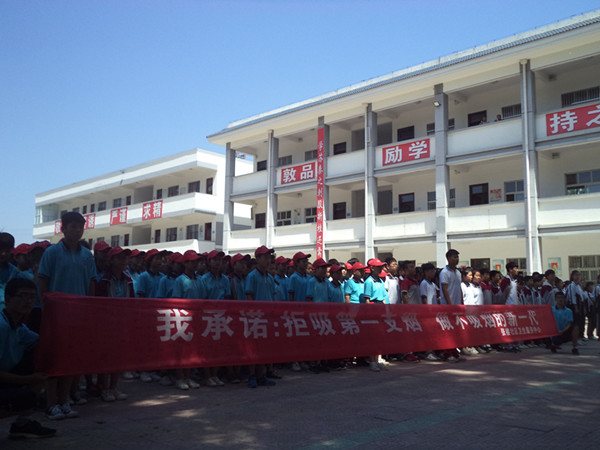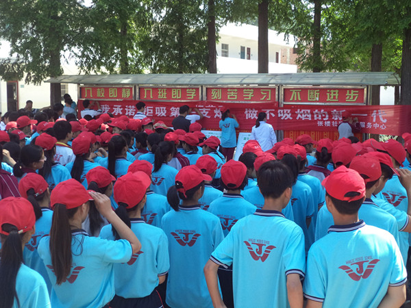 活动现场,张楼社区卫生服务中心健康教育专家向师生介绍烟草危害、烟草对心血管危害、拒绝二手烟、二手烟对孕妇及婴幼儿的危害。王杰中学300多名学生在签字条幅上郑重的签下自己的名字,我承诺:“拒吸第一支烟,做不吸烟的新一代”,争做控烟大使。