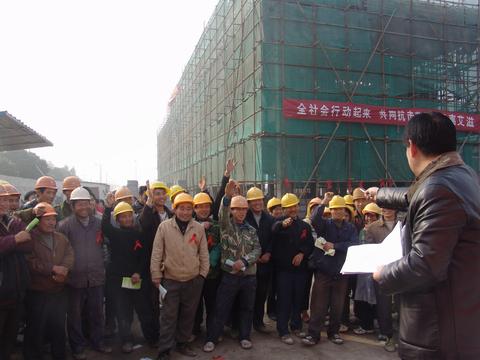 12月3日上午,鼓楼区规划展馆建筑工地人头攒动,工地内外到处悬挂着艾滋病宣传条幅,几十块宣传展板排列整齐,脚手架上、树上挂满了鲜红的红丝带。宣传活动开始后,市红十字会尹宝梅副会长代表主办方向工地农民工朋友们致词并表示慰问;工地代表宣读了向全市农民工朋友的倡议书;鼓楼区卫生局局长袁志金、爱卫办主任戚光跃分别代表主办方向工友们发放了宣传品、安全套、消杀药品;市疾控中心性艾科的专家就农民工预防艾滋病等有关问题现场进行了宣讲和知识解答。参加宣传活动的农民工朋友个个情绪饱满,争相提问和回答问题,充分表现了他们积极参与抗击艾滋的自觉性和责任心。