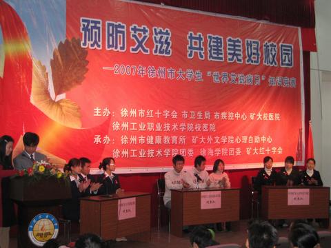 12月1日上午,中国矿业大学南湖校区文B102室内座无虚席。来自矿大外文学院和徐海学院、徐州工业职业技术学院的300余名大学生,在这里举办了“‘预防艾滋共建美好校园’徐州市大学生艾滋病防治知识竞赛”。竞赛活动组织有序、场面热烈、形式新颖,三个代表队分别就必答题、抢答题进行了角逐,还以同伴教育为题进行了现场表演。这次知识竞赛活动的成功举办和圆满的现场效果,充分说明了“中国遏制与防治艾滋病中长期规划”在我市高等院校得到了认真贯彻落实,艾滋病防治知识的宣传普及已在当今大学生中深入人心。比赛结果是中国矿业大学外文学院荣获一等奖,徐州工业职业技术学院荣获二等奖,中国矿业大学徐海学院荣获三等奖。