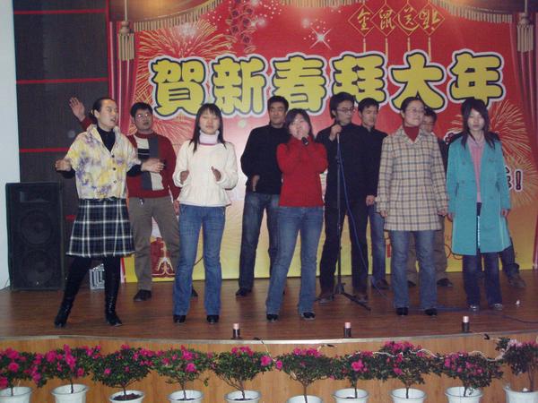 独唱、双人唱、小合唱、手语舞等节目精彩纷呈,赢得观众阵阵热烈的掌声。在精彩的歌舞表演中还穿插进行了猜谜、有奖问答等互动游戏,使现场欢庆的气氛达到高潮。最后,晚会在全体团员《相亲相爱的一家人》中圆满谢幕。