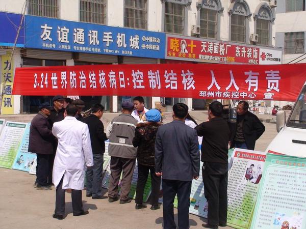 为科学防治结核病,增强人民群众防治意识,切实保护人民群众身体健康和生命安全,促进社会稳定和经济发展。2008年3月24日上午,市疾病预防控制中心分别在官湖镇及运河师范学校举行了以“控制结核,人人有责”为主题的第13个“3.24”世界防治结核病日大型宣传活动。