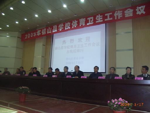 2008年3月18日,铜山县隆重召开全县学校体育卫生工作会议。江苏省教育厅分管领导王国强、李海宁,徐州市教育局主要分管领导葛宝堂、张继刚、郝易刚,铜山县分管付县长何长征、铜山县教育局长王慕启、铜山县文体局长冯军成、全县各中小学校校长、体育教师、保健医生共计238人参加了会议。这次会议总结了2007年全县学校体育卫生工作,布置2008了年全县学校体育卫生工作任务,会议表彰徐庄、马坡、黄集中心小学、棠张中心中学、沿湖学校等五个特殊贡献挂牌单位,郑集、棠张中学两个先进集体,吴兴德、范德豹、李东明、徐星华四名优秀工作者,培训国家级运动员优秀教师张贵平同志。会上,市教育局付长王慕启、省体卫艺处王国强、县付县长何长征等领导同志分别做了重要讲话,会议胜利闭幕。
