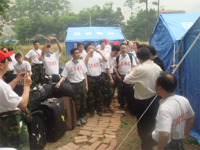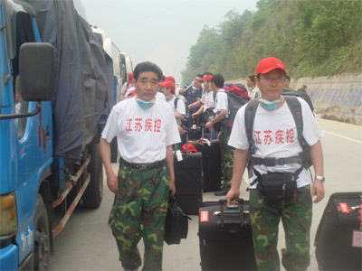 上午7:00整,统一参加省卫生厅、省疾病预防控制中心集训后,参加江苏省卫生防疫救援队,9:00经由南京禄口机场赴四川灾区,在省统一调度下奔赴绵阳。
