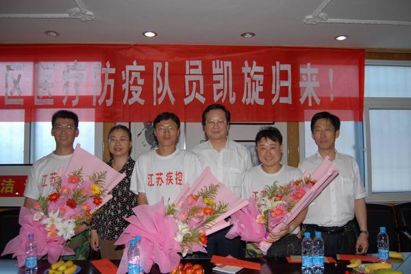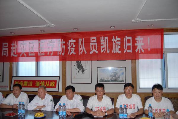 6月4日下午,欢迎首批赴四川灾区防疫救护队归来座谈会在市卫生局二楼会议室举行,市卫生局局长王文学、付局长吴宪等领导作了热情洋溢的讲话,高度肯定了防疫救护队在前线灾区的工作成绩和表现,并代表局党委即医疗战线的职工向他们表示衷心的感谢和亲切的慰问。防疫救护队队员、我中心卫生科科长薛诚也向局领导即各单位的代表作了简短的工作情况汇报,并表示将继续发扬救死扶伤的职业精神,听从组织召唤,时刻准备着,为灾区人民再做贡献。