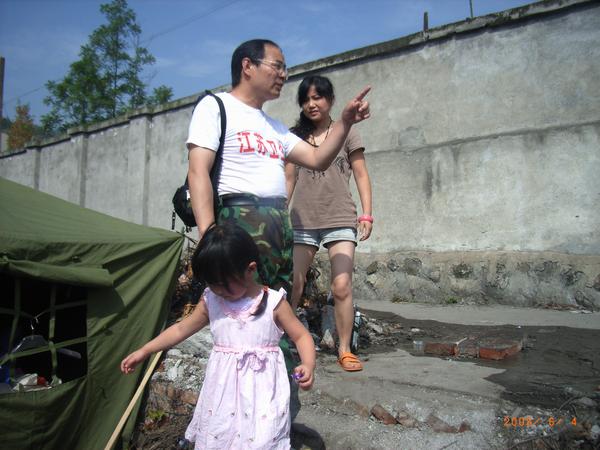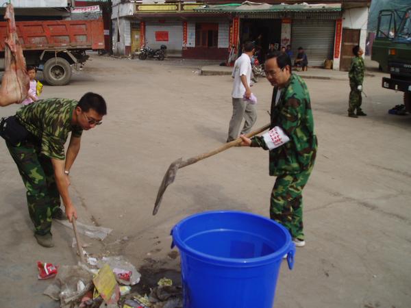 江苏卫生防疫救援队6队队员在帮助清理环境垃圾