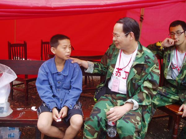 校园坍塌8小时后被成功救出的某中学初二学生张××,图为心理辅导场景