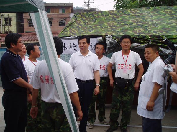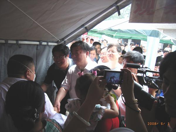 6月1日卫生部陈竺部长来什邡蓥华镇卫生院视察6队负责指导重建的临时预防接种点