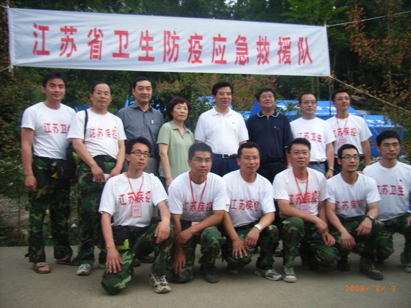 6月3日卫生部疾控局和省卫生厅领导来四川看望6队同志并合影留念