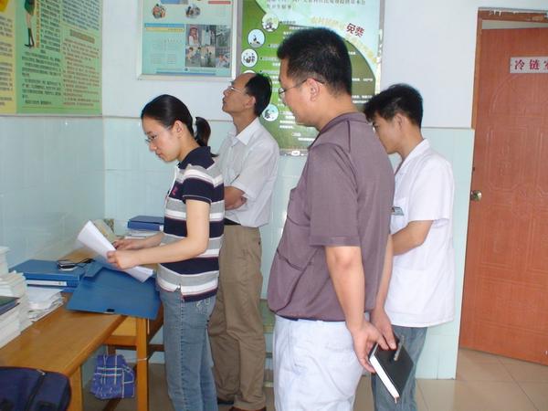 检查组一行来到邳州市碾庄镇,对该镇社区卫生服务中心进行检查,首先查看了中心及防保站的健康教育宣传栏设置与定期更换情况、健康教育室设置情况和健康处方发放情况。然后对照检查提纲逐条查资料,每项内容都查得清清楚楚,问得明明白白,并对有关工作进行指导。最后,检查组在有关人员陪同下查看了该镇的彭庄村。在彭庄村社区卫生服务站,检查人员仔细检查了健康教育室及软硬件的设置,查看了健康教育入户材料的发放情况,并与村里人员进行了沟通交流,了解健康教育工作情况。