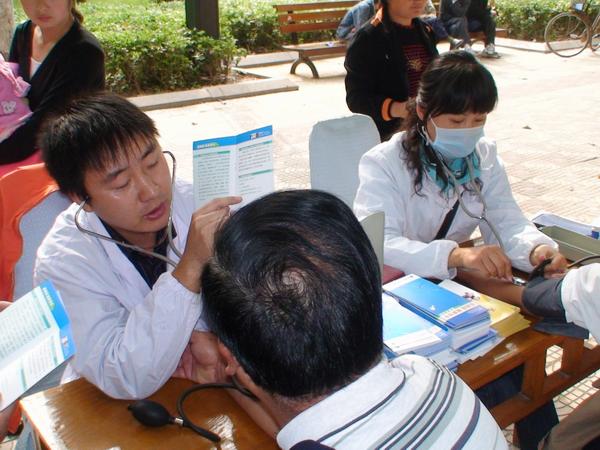 10月8日是第十一个高血压日. 邳州市开展以“家庭自测血压”为主题的宣传活动.活动现场宣传板报和发放宣传材料等形式进行,并在现场为前来咨询的近200名群众免费测量血压并对其现场指导.卫生局曹辉局长和疾控中心戴明书记亲临现场指导工作,同时电视台记者到现场采访了解我市高血压情况及本次活动的意义.本次宣传活动对我市高血压知识普及起到良好的促进作用.