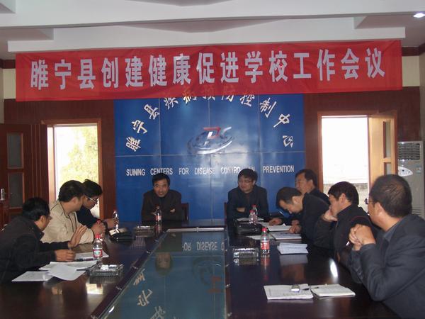 2008年11月14日,睢宁县创建健康促进学校工作会议在县疾控中心召开,县卫生局、教育局分管领导,职能科室负责人及疾控机构分管负责人参加了会议。