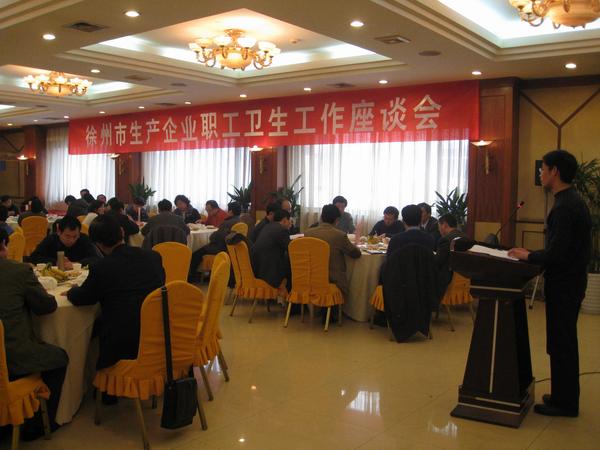 2009年3月5日下午,徐州市疾控中心、市预防医学会在市中山饭店联合举办了生产企业职业卫生工作座谈会,市卫生局、市安全生产监督管理局、市总工会、江苏省煤矿安全生产监督管理局徐州监察分局有关领导和徐州市部分大型企业从事职业卫生安全环境管理人员共计60余人参加座谈。