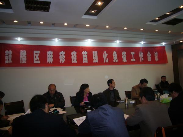 为贯彻落实市卫生局《关于在全市开展麻疹疫苗强化免疫活动的通知》,实现2012年麻疹发病率控制在1/100万以下目标,圆满完成2009年3月至4月间,对全区范围内8月龄~14岁儿童的麻疹疫苗强化免疫任务,鼓楼区政府于2009年3月17日上午在区政府会议室召开了全区麻疹疫苗强化免疫工作会议,区公安局、文教局、卫生局、区疾控中心、辖区各办事处、社区卫生服务中心以及辖区内市属中学负责人共30余人参加了会议。 会上区卫生局张晓妍副局长具体布署了《2009年徐州市鼓楼区麻疹疫苗强化免疫活动实施方案》,明确了各单位在本次免疫活动中的工作职责及工作安排。邵长红副区长、区卫生局袁志金局长分别作了重要讲话,要求各单位高度重视、加强协调、各办事处及学校要层层做好宣传发动,公安部门要配合提供人口信息资料并及时处理突发事件,区疾控中心及社区卫生服务中心要全力以付开展本次强化免疫预防接种任务。