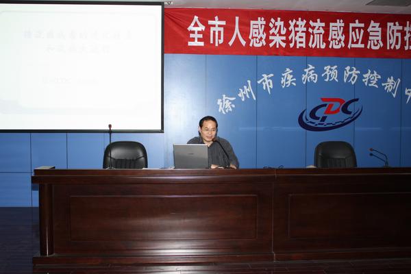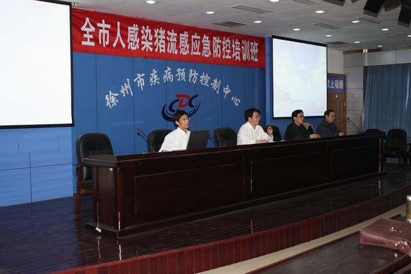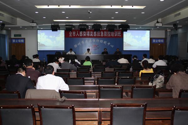 人感染猪流感病毒A(H1N1)疫情已引起国际社会的广泛关注,为提高我市应对人感染猪流感病毒A(H1N1)疫情的能力,2009年5月1日下午,徐州市人感染猪流感病毒防控应急培训班在徐州市疾病预防控制中心紧急召开,参加会议的代表有各县(市)、区(开发区、企业)卫生局(处)应急办主任、疾控(社卫)科长;县(市)区(开发区、企业)疾病预防控制中心分管主任、应急办主任、防疫(急传)科长;以及全市二级以上医院感染管理科或预防保健科负责同志。