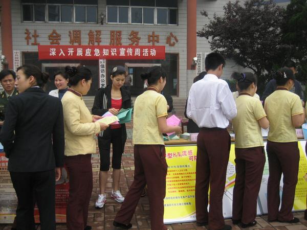 5月12日上午,在区应急办的组织下,我区举办了预防甲型H1N1流感科普知识宣传活动,通过发放宣传材料,展牌展览、现场咨询等方式,使群众充分了解到甲型H1N1流感病毒是可防、可控、可治的 。本次活动共发放宣传资料500余份,制作宣传展板2块,现场咨询150余次。