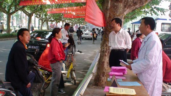 5月17日上午9点,邳州市疾控中心在人民路开展了科普宣传周活动,在活动现场,市民对宣传活动表现出极大的热情,宣传人员通过版画、小册子、一对一的讲解等多种形式,生动形象地提供卫生防病相关知识,使前来咨询的市民对春季传染病、慢性病防治、结核病防治等方面有了一定的了解,此次活动共准备宣传横幅一条,宣传板面15块,宣传车一辆,散发宣传单2000余份,活动取得了较好的效果。