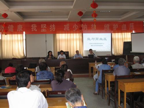 2009年10月8日是我国第12个“全国高血压日”。 近年来高血压防治的“三率”水平有所提高,但离控制高血压,遏制心脑血管疾病的目标还很远,我们面临的高血压防治任务依然艰巨。高血压的危险因素是明确的,长期高盐饮食,长期过量饮酒,超重/肥胖,长期精神过度紧张等均是高血压的主要危险因素。在徐州居民普遍存在膳食高盐的背景下,限制钠盐摄入量非常有利于预防和控制高血压。为引起社区居民对“盐与高血压”的重视,徐州市疾病预防控制中心联合云龙区疾控中心于9月29日在黄山社区卫生服务中心以“盐与高血压”为主题,以“为健康 我坚持 减少钠盐 维护血压”为口号的社区宣传活动。市卫生局有关领导参加了现场宣传。