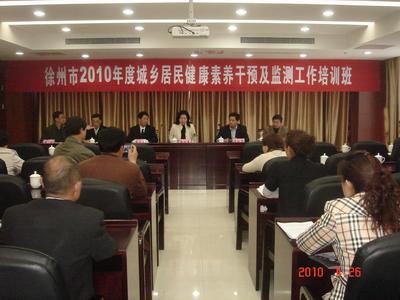 为大力推进“健康素养促进行动”,加快普及健康素养基本知识与技能,进一步提高全市城乡居民健康素养综合水平,全面落实《2010年度江苏省城乡居民健康素养干预及监测工作方案》有关要求,市卫生局、爱卫办于2010年4月26日在市行政中心召开徐州市2010年度健康素养干预与监测工作培训会议。市及各县(市)、区爱卫办主任、疾控中心分管主任、健教科长、其他有关人员等40余人参加了此次会议。