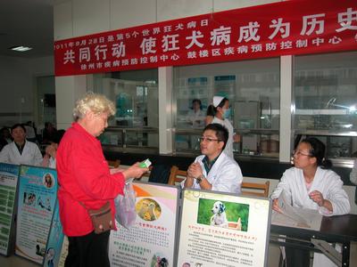 2011年9月28日是第5个“世界狂犬病日”,宣传主题是“共同行动,使狂犬病成为历史”。为加强狂犬病防治的宣传,广泛传播我国狂犬病防治的有关政策和科学知识,提高群众狂犬病防治知识水平,减少狂犬病发生,9月28日上午,徐州市疾控中心、鼓楼区疾控中心、鼓楼区铜沛社区卫生服务中心联合在铜沛社区卫生服务中心输液大厅举办“世界狂犬病日”宣传活动。