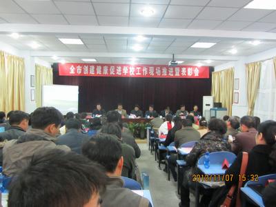 市教育局葛宝堂副局长对全市创建健康促进学校工作提出了明确的目标和要求:一是牢固树立“健康第一”的理念,把学生健康成长作为学校工作的出发点和落脚点。二是进一步明确健康促进学校的内涵,积极主动地做好创建工作。三是进一步明确工作目标,努力实现全省一流创建水平。要求各地中小学健康教育课每学期不少于7课时,2013年开始全市中小学要全面禁烟。到2015年,各地各校学生的健康知识知晓率和行为形成率应分别达到95%和85%;全市50%左右的中小学要开展并达到健康促进学校评价标准,城区80%的中小学要开展并达到健康促进学校评价标准;学校食堂食品安全监督量化达到C级以上;中小学生健康体检率达到100%;预防接种建卡率、接种率均达到95%以上;肥胖、近视、龋齿、伤害等学生常见病的防控指标比2010年明显下降;中小学生肥胖率控制在8%以下,适龄学生窝沟封闭覆盖率超过20%,12岁龄学生患龋率控制在25%以内;群体性食物中毒、传染病暴发疫情得到有效遏制;学生健康素养显著提升,初步建立学校、家庭和社会三位一体的学生健康素养评价体系。四是进一步细化工作任务,全面提升我市中小学生健康水平。