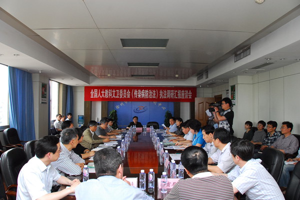 5月15日下午,座谈会由徐州市人大常委会副主任束志明主持,副市长孔海燕致辞,市卫生局局长吴宪向全国人大执法调研组汇报新修订的《传染病防治法》颁布实施以来徐州市传染病防治疫情概况、主要工作措施、面临形势,并针对徐州市的实际情况,提出了一些问题和建议。市卫生局副局长胡传峰、市疾控中心主任张雷、铜山区卫生局副局长董传金分别进行了发言。调研组就一些相关问题进行了深入了解,并就《传染病防治法》在实施中存在的突出问题开展了座谈,同时也针对存在问题对徐州市进一步加强传染病防治工作和贯彻实施传染病法提出了更高的要求。