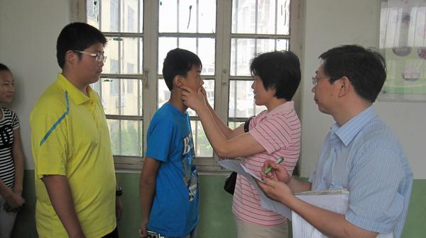 按照《江苏省饮水型地方性氟中毒监测方案》要求,徐州市疾控中心成立了由地方病科长陈月娥带队的调查组,调查组在相关县(区)随意抽取3个病区村开展调查工作,调查组对监测村全部8-12岁儿童进行氟斑牙检查;同时采集村(居)民的饮用水,进行水氟含量的检测。