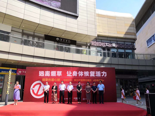 公共场所禁止吸烟已经成为一种共识和社会文明、人类进步的体现。为了倡导更多的公共场所、大型商业街区运营管理者提升行业自律,强化禁烟宣传,树立控烟标杆,5月31日世界无烟日当天我市诞生了第一条“无烟示范街区”——三胞国际广场。市爱卫办主任曹配亮为三胞国际广场授牌。泉山区卫计委主任谢夫玲,市疾控制中心副主任常桂秋共同为三胞国际广场“禁烟劝阻员”代表颁发荣誉臂章。他们分别是来自管理、服务一线的保安和保洁人员,他们也是发现和制止公共场所吸烟的“第一线人”。活动现场主持人也真诚的向全社会发出呼吁:希望大家理解和尊重他们的工作,自觉维护公共环境,绝不在公共场所吸烟!从而远离烟草,选择健康!